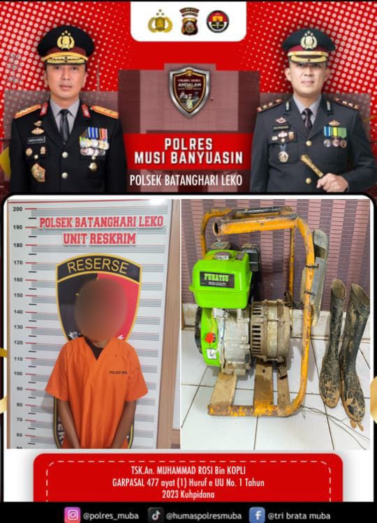 SUARAPUBLIK.ID, MUSI BANYUASIN – Memanfaatkan situasi lingkungan yang sepi, seorang pemuda berinisial MI (26) nekat mencuri mesin genset milik warga di teras rumah.