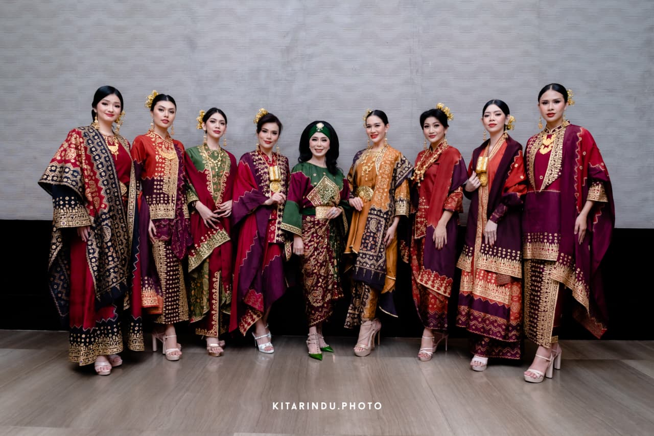 Lina Dedy menambahkan elemen kain yang diperada menonjolkan kilau emas yang menjadi ciri kemewahan khas Palembang. Kombinasi material tradisional ini diolah melalui pendekatan desain modern sehingga menghasilkan kebaya yang tidak hanya anggun, tetapi juga relevan dengan perkembangan fashion saat ini.