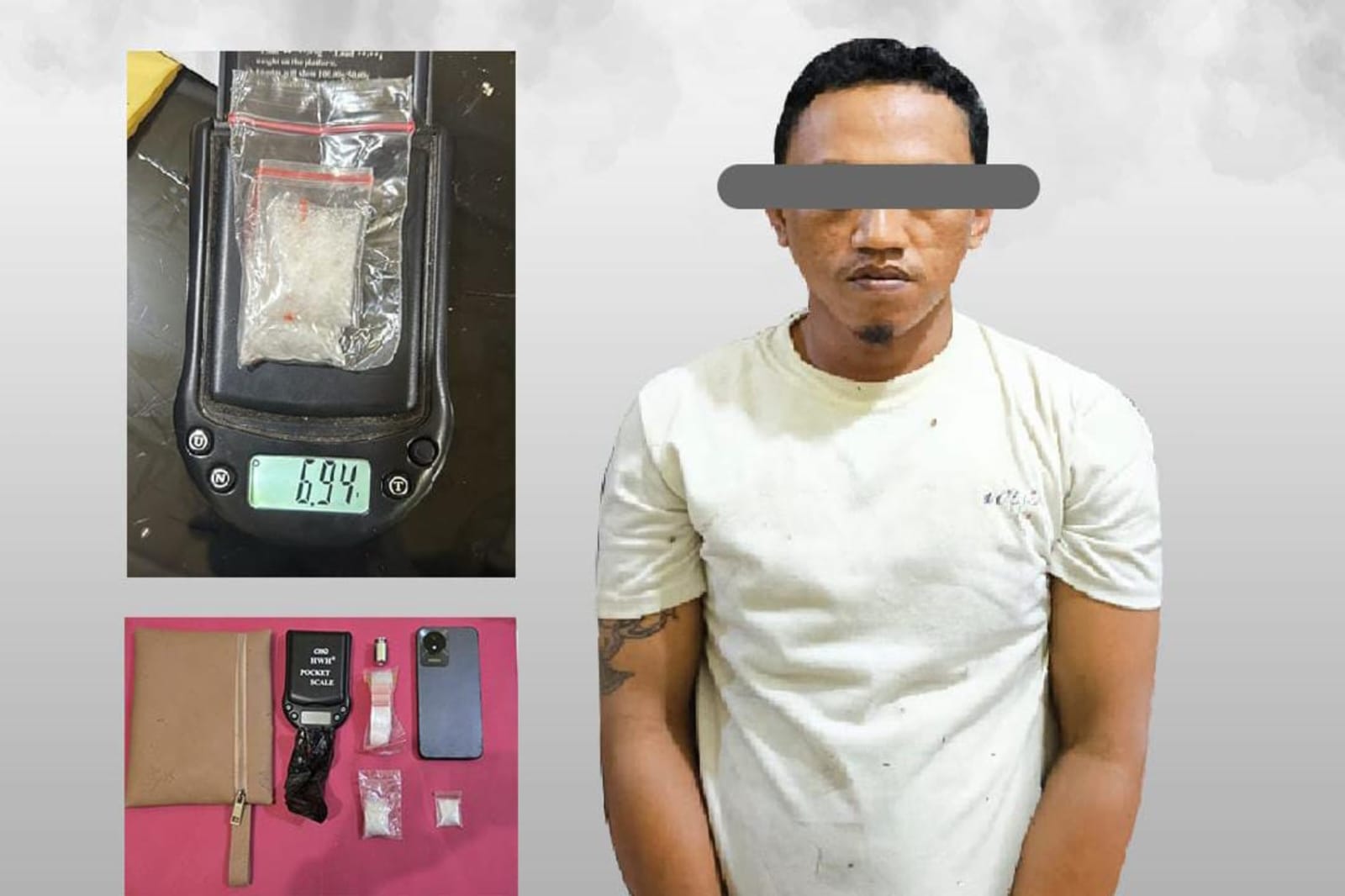 Dari tangan pelaku, tim mengamankan barang bukti narkotika jenis sabu-sabu dengan berat bruto 6,94 gram.