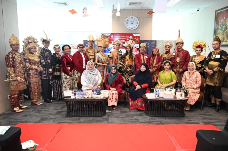 Sejak pagi, nuansa kebhinekaan terasa kental. Para pekerja tampil mengenakan busana adat dari berbagai daerah di Indonesia, menciptakan suasana penuh warna sekaligus memperkuat semangat kebersamaan di lingkungan kerja.