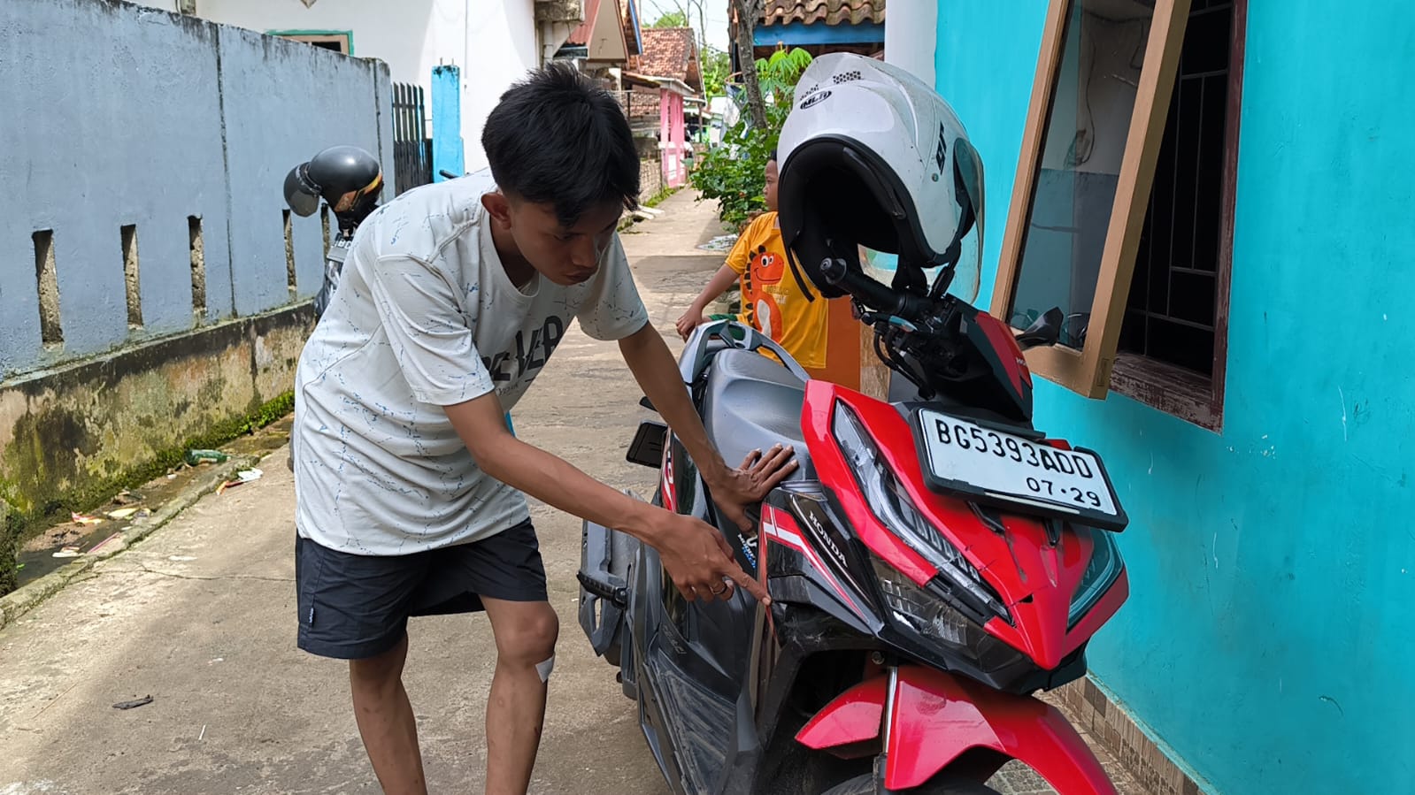 Mereka menggunakan dua sepeda motor, dan Yoga berboncengan tiga dengan adik sepupu serta seorang temannya menggunakan sepeda motor Vario merah.