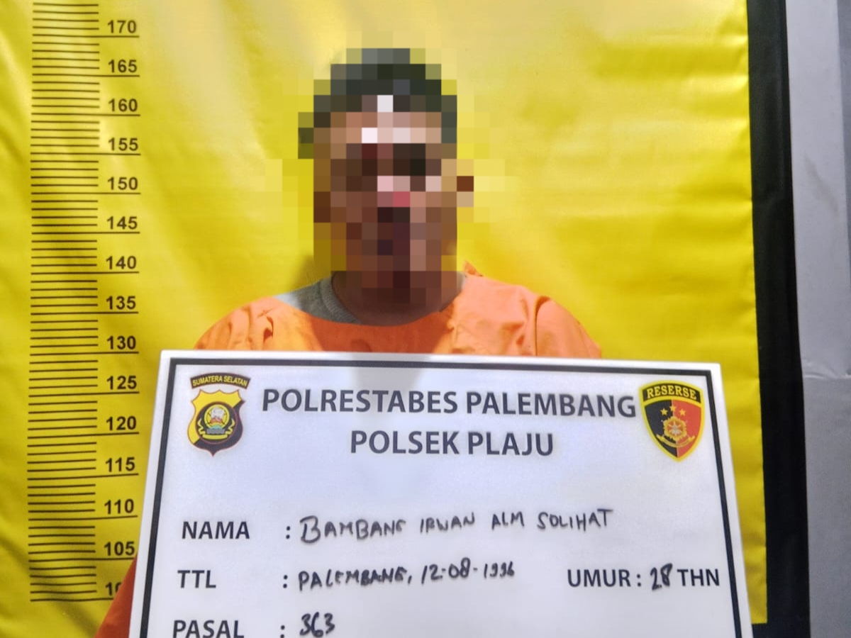 Pelaku yakni Bambang (29), warga Lorong Terusan I Kelurahan 5 Ulu Kecamatan SU I, Palembang langsung diamankan ke Polsek Plaju berserta barang bukti berupa 2 buah kunci T dan 1 unit kendaraan motor Yamaha Jupiter MX Nopol BG 3962 AAH warna hitam putih milik pelaku.